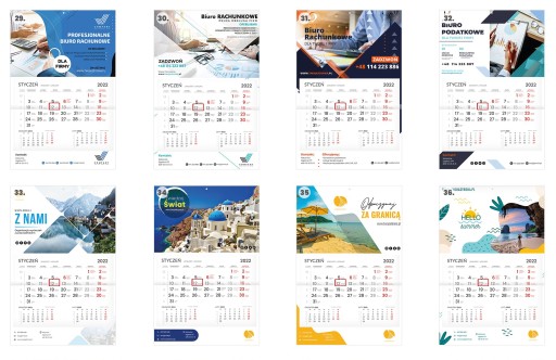 Oferujemy projekt graficzny z wybranego szablonu + druk kalendarzy, które są prestiżowym gadżetem reklamowym Twojej firmy.
