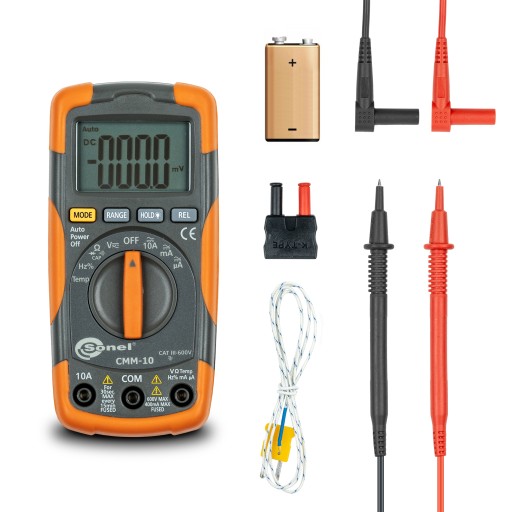 Prosty i niezawodny multimetr cyfrowy Sonel CMM-10 przeznaczony do badania podstawowych parametrów takich jak napięcie stałe i przemienne, prąd AC i DC, częstotliwość, pojemność, cykl roboczy oraz temperatura. Jest to niewielkie urządzenie o szerokim zakresie zastosowań dedykowane elektrykom mieszkaniowym oraz komercyjnym. Dzięki możliwości pomiaru temperatury, jego zalety docenią również technicy ogrzewania oraz klimatyzacji. Łącząc w sobie kieszonkowe wymiary, intuicyjną obsługę oraz szereg praktycznych funkcji z wyjątkowo korzystną ceną, przyrząd spełni oczekiwania początkujących, jak i zaawansowanych użytkowników z branży elektrycznej i nie tylko. Duże cyfry na podświetlanym wyświetlaczu gwarantują błyskawiczne odczytanie wyniku nawet w obszarach niedostatecznie oświetlonych. Dzięki temu przyrząd zapewnia niezawodność bez względu na warunki pracy. To idealne rozwiązanie dla każdego elektryka, montera i konserwatora.