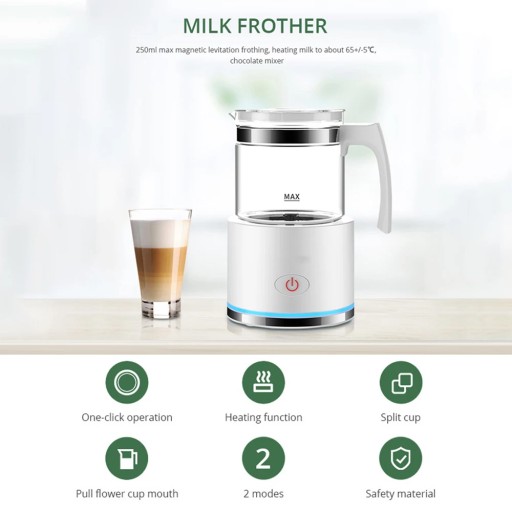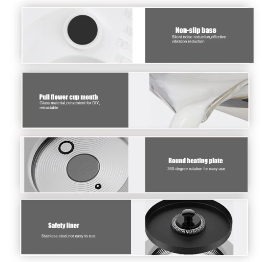 ⭐Specyfikacja: ⭐Materiał produktu: stal nierdzewna 304 #43; wysokiej jakości szkło borokrzemowe ⭐Rozmiar produktu: 19,5 x 11,8 cm / 7,67 x 4,65 cala ⭐Waga produktu: 0,095 kg / 3,35 uncji ⭐Kolor produktu: czarny, biały (opcjonalnie) ⭐Moc: 600 W ⭐Czas gorącego/zimnego mleka: 70–80 s ⭐ Pojemność: 250 ml / 8,45 uncji w podgrzewaniu mleka, 100-150 ml / 3,38-5,07 uncji w spienionym mleku ⭐Przekładnia: 2 tryby, podgrzewanie mleka (czerwone światło) 65±5°C / 149±41°F, tryb normalny (niebieskie światło) ) 25°C / 77°F ⭐Hałas: 70dB ⭐Typ wtyczki: wtyczka EU 220V ⭐Lista pakowania: ⭐1 x dzbanek do spieniania mleka ⭐1 x podstawa zasilająca