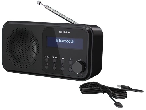 W opakowaniu znajduje się: radio SHARP DR-P420, kabel micro-USB/USB-A, dokumentacja.