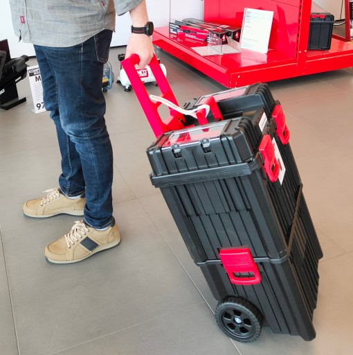 Skrzynia narzędziowa Kistenberg wysyłana jest złożona. Wystarczy zamontować kółka jezdne, aby otrzymać pełnowymiarową mobilną skrzynię narzędziową o wysokości 64cm.