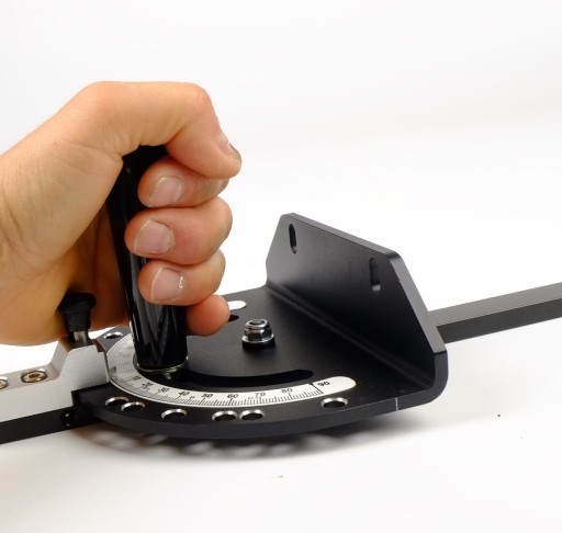 Wygodna rączka do przesuwania prowadnicy służy również do blokowania w dowolnym kącie.
