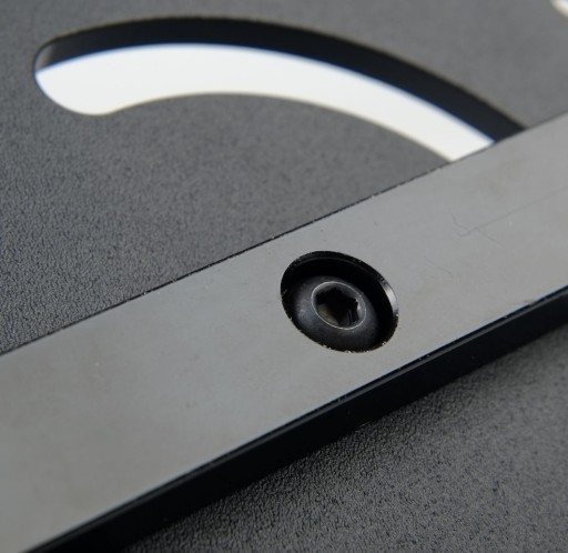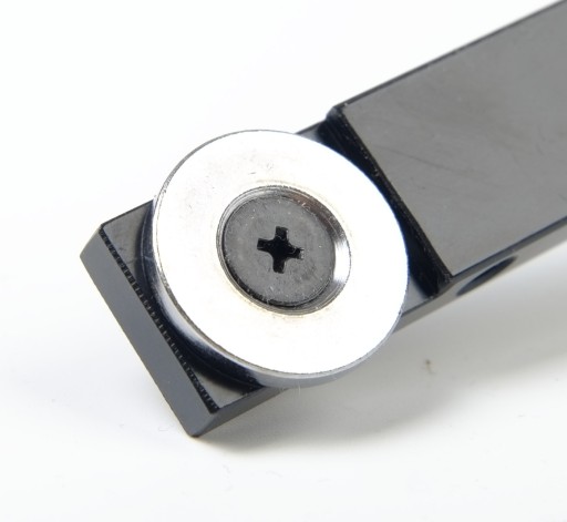 Długi ślizg ze stopu aluminium wyposażony jest śruby kasujące luz w rowku. Odkręcane kółko na końcu ślizgu blokuje prowadnicę w rowku.