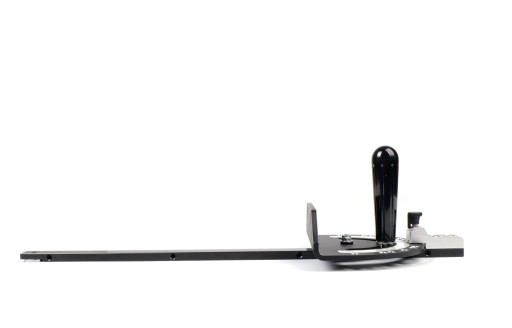 Długi ślizg ze stopu aluminium wyposażony jest śruby kasujące luz w rowku. Odkręcane kółko na końcu ślizgu blokuje prowadnicę w rowku.