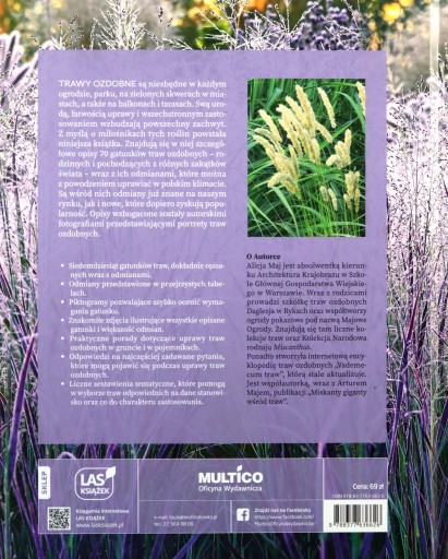 Trawy ozdobne są niezbędne w każdym ogrodzie, parku, na zielonych skwerach w miastach, a także na balkonach i tarasach. Swą urodą, łatwością uprawy i wszechstronnym zastosowaniem wzbudzają powszechny zachwyt. Z myślą o miłośnikach tych roślin powstała niniejsza książka. Znajdują się w niej szczegółowe opisy 70 gatunków traw ozdobnych rodzimych i pochodzących z różnych zakątków świata wraz z ich odmianami, które można z powodzeniem uprawiać w polskim klimacie. Są wśród nich odmiany już znane na naszym rynku, jak i nowe, które dopiero zyskują popularność. Opisy wzbogacone zostały autorskimi fotografiami przedstawiającymi portrety traw ozdobnych.