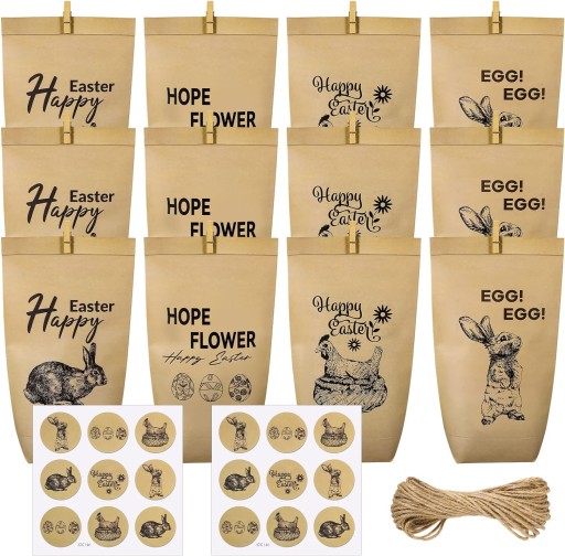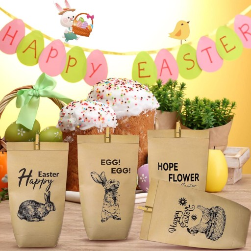 - Wygodne w użyciu – torebki z nadrukiem na Wielkanoc mają płaskie dno i mogą stać pionowo na stole bez przewracania się . W przypadku nieużywania można je złożyć zgodnie z zakładką w celu łatwego przechowywania.