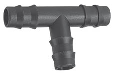 Trójnik na wąż 16 mm w kształcie litery "T" wykonany z tworzywa sztucznego, przeznaczony do instalacji wodnych