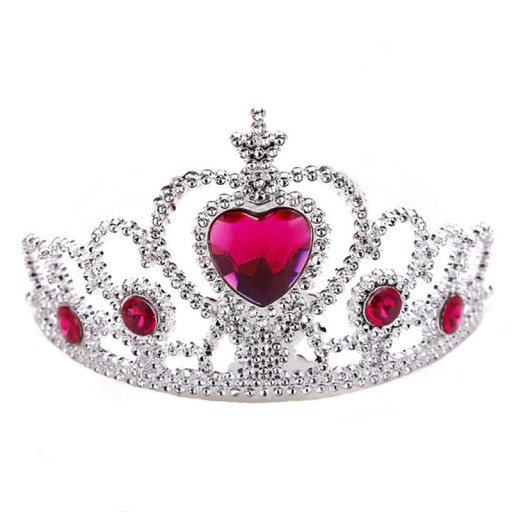 Srebrna korona zdobiona różowymi błyszczącymi kryształkami do samodzielnego złożenia. Prosty montaż, wystarczy wcisnąć koronę na wypustki.