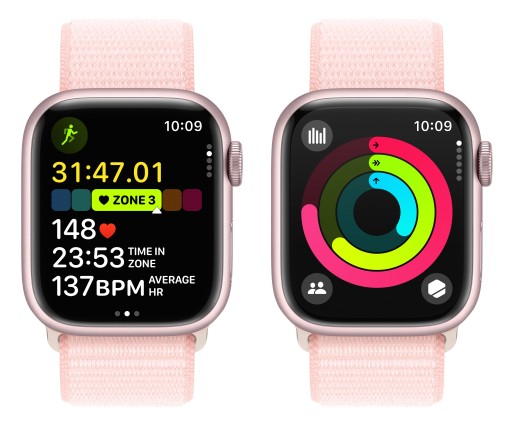 APPLE Watch 9 GPS 41mm koperta z aluminium (różowy) + opaska sportowa (różowa)