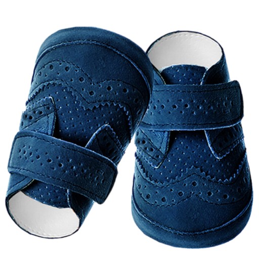 Buciki wykonane z zamszowej eko-skóry. Buciki z przodu ozdobione ażurowym wzorem. Niezwykle lekkie i wygodne, umieszczone na miękkiej podeszwie. Zapinanie na rzep, wkładka wykonana z delikatnego materiału.