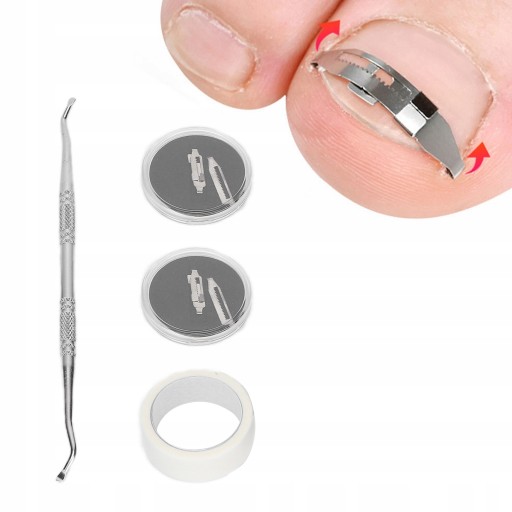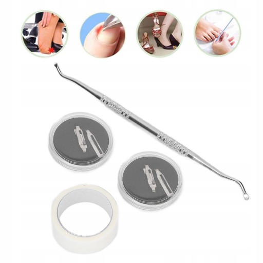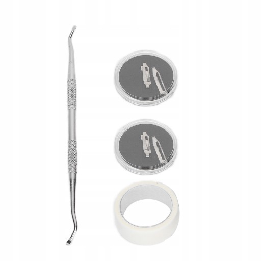 Specyfikacje: 2 zestawy nadających się do noszenia ortez na wrastające paznokcie, 2 bezpłatne tabletki zastępcze i 1 taśma medyczna