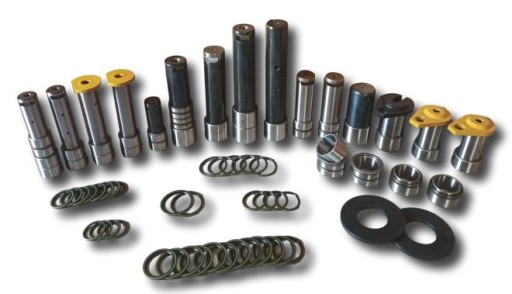 Sworznie i tuleje wykonane są z wysokogatunkowej stali, hartowane do 56-62 HRC.