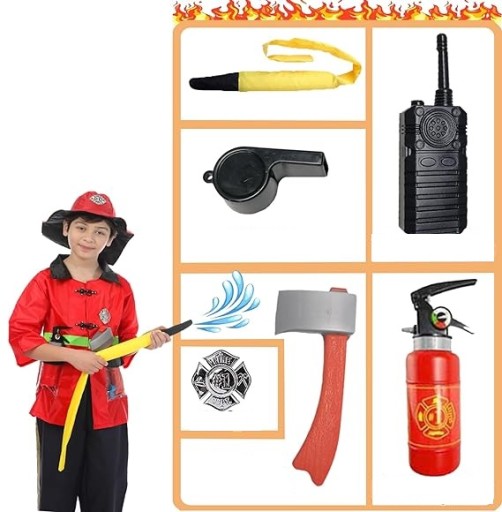 Комплект костюма пожарного пожарного для детей, аксессуары