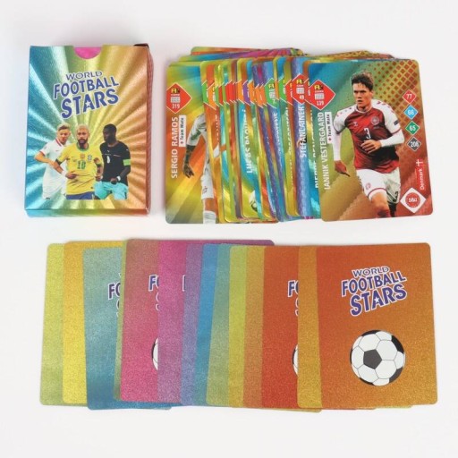 - Podkreśl swoje zamiłowanie do piłki nożnej i podniesionej na wyższy poziom kolekcjonerstwo dzięki naszym tęczowym Kartom Piłkarskim. Każda karta to nie tylko hołd dla ulubionego piłkarza, ale też szansa na podziwianie unikalnego designu i piękna kolorowego wykończenia. Zamów swój zestaw już dzisiaj!