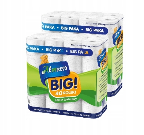 Almusso BIG! to duuuża ekonomiczna paczka trzywarstwowego papieru toaletowego w którym połączono komfort użytkowania oraz oszczędność w jednym. Celuloza, pochodzi z certyfikowanych źródeł odnawialnych plantacji drzew, a folia podlega w 100% recyklingowi