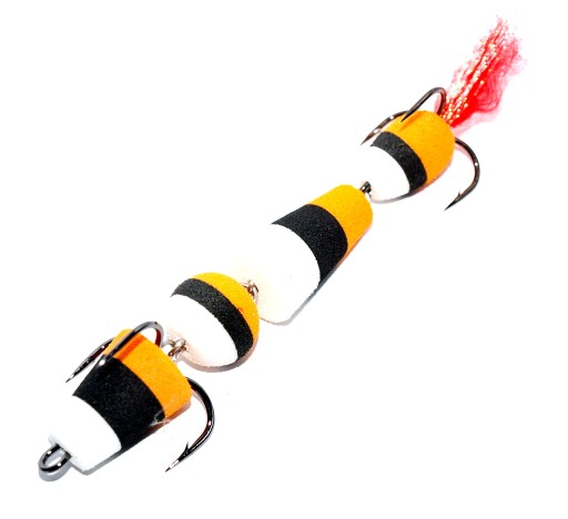 Wykonana z lekkiej, pływającej pianki EVA - postawiona na dnie unosi się ułatwiając drapieżnikom atak. Metalowe łączniki wykonane z mocnego, nierdzewnego drutu. Kotwice ostre, nierdzewne w kolorze czarnego niklu, w rozmiarach 3 i 5.