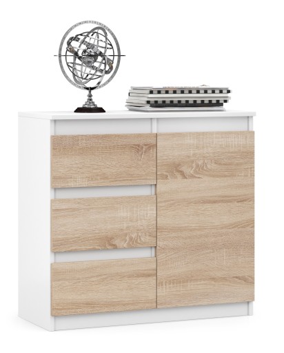 * Aukcja dotyczy komody z korpusem biały mat oraz frontami dąb sonoma. Zdjęcia innego koloru są zdjęciami poglądowymi.