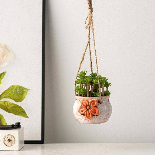 [Materiał najwyższej jakości]: Wisząca donica wykonana jest z wysokiej jakości materiału ceramicznego, ma rustykalny i elegancki charakter dekoracyjny, a tekstura jest delikatna i może pomieścić piękne kwiaty oraz piękne dekoracje do domu i biura.