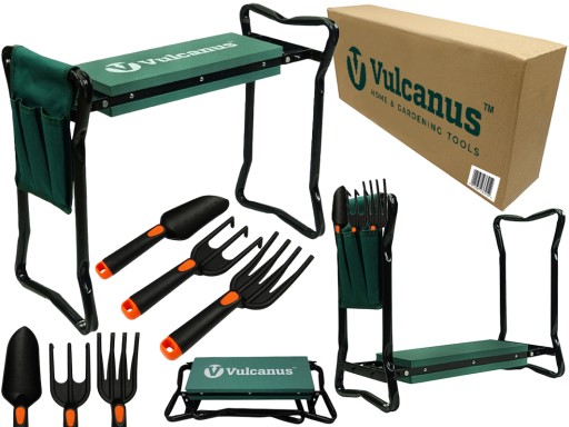 ✨ Taboret, klęcznik ogrodowy z torbą 2w1 + narzędzia 3 szt VULCANUS