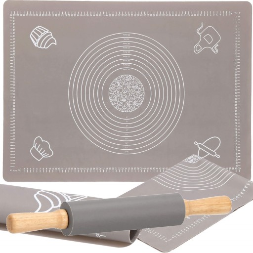 Stolnica silikonowa wyposażona jest w podziałki długości oraz średnicy, które idealnie przydają się podczas gotowania przy pomocy przepisów z książek kucharskich lub blogów, które posiadają określone rozmiary wykonywanych ciast. Wałek silikonowy wyposażony jest natomiast w drewniane, wyprofilowane rączki, dzięki którym nawet podczas długiego wałkowania ręka nie zmęczy się zbyt szybko.
