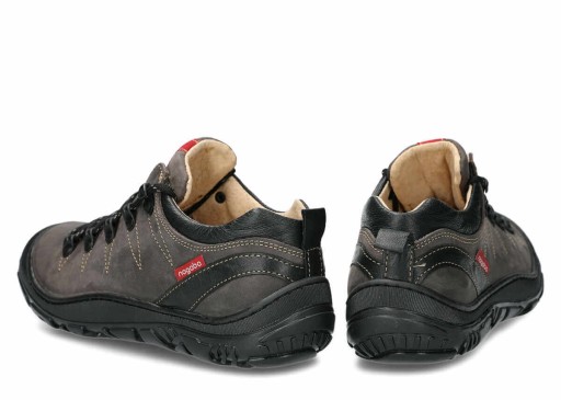 Cholewka w grafitowych butach NAGABA 241 została wykonana z naturalnej skóry typu crazy, a wewnątrz - zastosowany materiał podszewkowy również ze skóry naturalnej. Gwarantuje to nie tylko odpowiednią trwałość, ale również ułatwia to „oddychanie” stopy, czyli odprowadzanie zbierającej się wilgoci. Z tego też względu półbut trekkingowy NAGABA 241 grafitowy crazy skórzany spełni swoje zadanie podczas rekreacyjnych spacerów, a także wymagających wędrówek po górskich szlakach, zarazem ciekawie się prezentując z pozostałą częścią sportowej stylizacji.