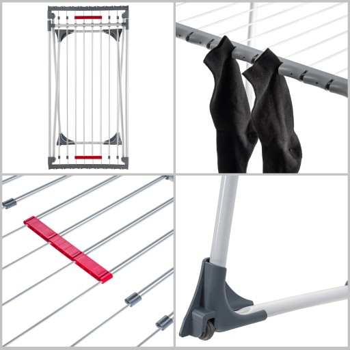 ✅DUŻA POWIERZCHNIA SUSZENIA – przy maksymalnym rozłożeniu suszarka oferuje aż 20 m powierzchni suszenia! Duża suszarka do prania umożliwia zatem łatwe rozwieszenie większej ilości koszulek, ręczników, bielizny i wielu innych.