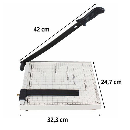 Nasza gilotyna do cięcia papieru to narzędzie, które umożliwia precyzyjne przycinanie papieru o różnych rozmiarach. Bez względu na to, czy potrzebujesz wyciąć kartkę o standardowym rozmiarze A4 czy też bardziej nietypowy format B7, nasza gilotyna jest gotowa sprostać Twoim potrzebom. Sprawdzi się również wykorzystując ją w pracach ręcznych, np. jako Scrapbooking