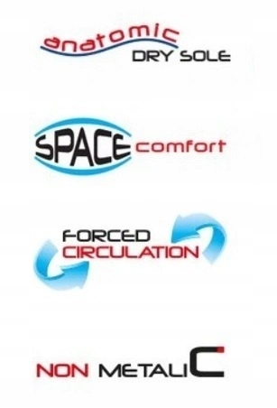 - wkładka wewnętrzna: HI-POLY – anatomicznie ukształtowana, lekka pianka poliuretanowa pokryta tkaniną MESH, antystatyczna,