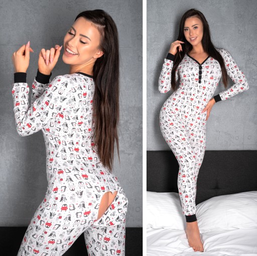 Seksowny kombinezon z rozpinaną klapką w kształcie serca na pośladkach.