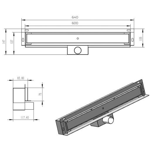 Kompletny odpływ liniowy prysznicowy 60 cm x 7 cm