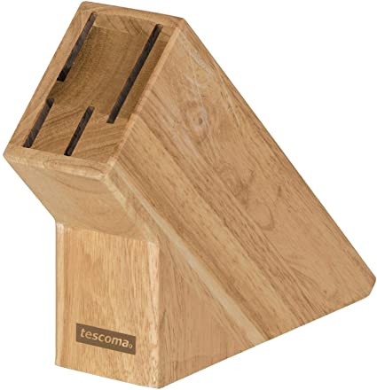 Blok na 4 noże został wykonany z wysokiej jakości drewna kauczukowca brazylijskiego.