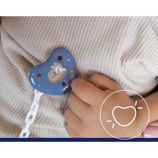 Łańcuszek LOVI jest wyposażony w praktyczny klips, który umożliwia stabilne i silne przymocowanie do ubranka dziecka, chroniąc smoczek przed zabrudzeniem lub zgubieniem.
