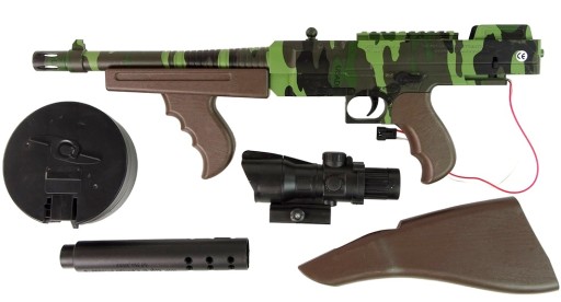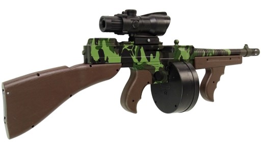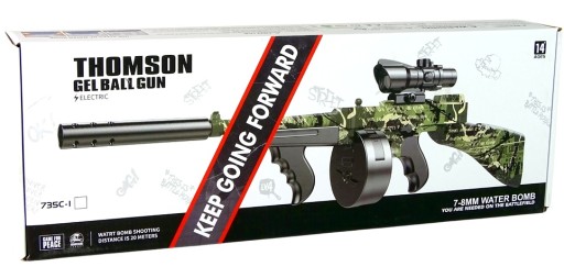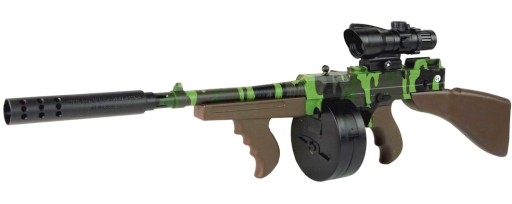 Karabin Thomson na kulki wodne to interaktywna zabawka, która dostarczy wiele godzin zabawy i rozrywki. Jest to model o długości całkowitej wynoszącej około 65 cm, co nadaje mu realistyczną i imponującą estetykę. Co więcej, pistolet jest ozdobiony wzorem moro co nadaje mu atrakcyjnego i bojowego wyglądu. Pistolet jest zasilany dwoma akumulatorkami, co sprawia, że jest wygodny w użytkowaniu. Dzięki zastosowaniu akumulatorów nie trzeba martwić się o częste wymienianie baterii, co pozwala na dłuższą zabawę.