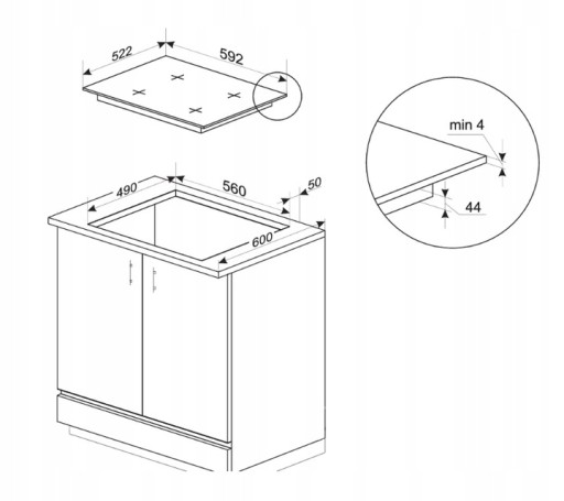 - Szerokość netto: 595 mm