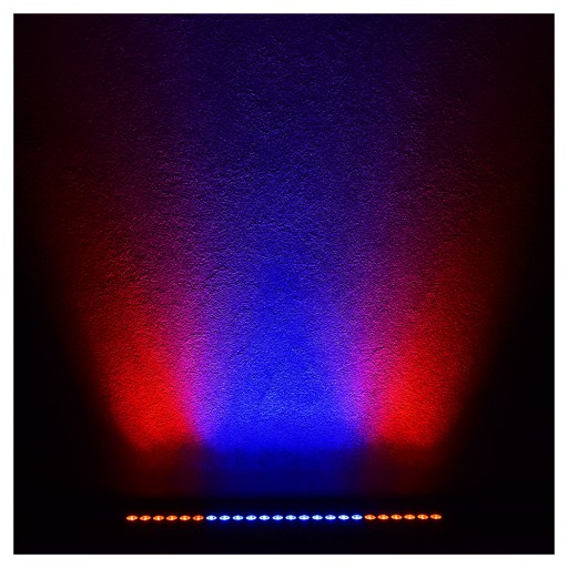 LIGHT4ME SPECTRA BAR 24x6 RGBWA-UV to profesjonalna i bardzo wszechstronna listwa LED, wyposażona w 24 mocne, 6-watowe diody operujące światłem w palecie RGBWA-UV (red, green, blue, white, amber, oraz światłem ultrafioletowym). Dzięki emisji tak szerokiego spektrum ta belka LED znajduje bardzo szerokie zastosowanie. Doskonale sprawdza się jako oświetlenie estradowe na różnego typu scenach, w klubach muzycznych i dyskotekach, a także w dekoracji światłem sali weselnych oraz pomieszczeń restauracyjnych i hotelowych.