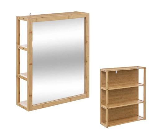 LUSTRO ŁAZIENKOWE BAMBUSOWE z PÓŁKAMI 60x48 cm