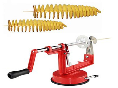 Maszynka ręczna do robienia zakręconych frytek to idealne i bardzo przydatne urządzenie w każdej kuchni. Dzięki niej zrobisz smaczne i oryginalne danie. To nowość na polskim rynku i co ważne, świeże danie, bijące na głowę smakiem i wyglądem tradycyjne mrożone frytki. Są to specjalnie pocięte ziemniaki na patyku, które następnie smażone są w gorącym oleju przez 3-4 minuty. Mogą być podawane z różnymi przyprawami.