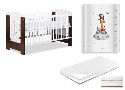 KLUPŚ Łóżeczko SAFARI ŻYRAFKA biel-orzech