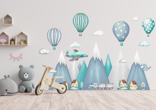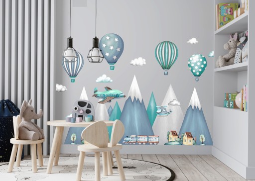 Наклейки на стену для детей на стену горы горы воздушные шары самолет вертолет