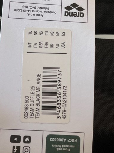 ARENA TEAM DUFFLE 25