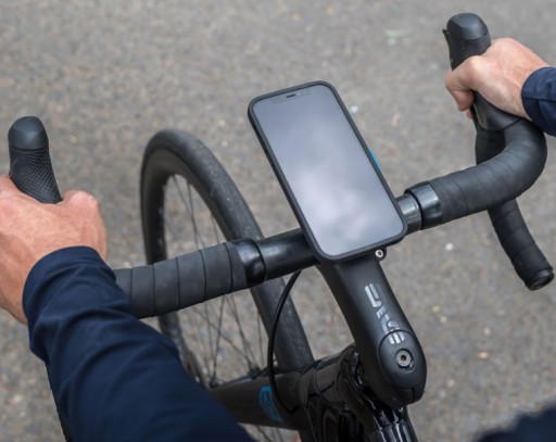 - Mocowanie jest wyposażone w opatentowaną dwustopniową blokadę, która pozwala jeździć z pewnością, wiedząc, że smartfon pozostanie bezpieczny na rowerze, bez względu na teren.