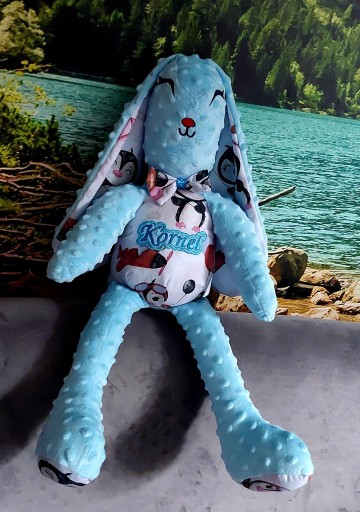 Polecamy ślicznego króliczka z haftem imienia na brzuszku.
