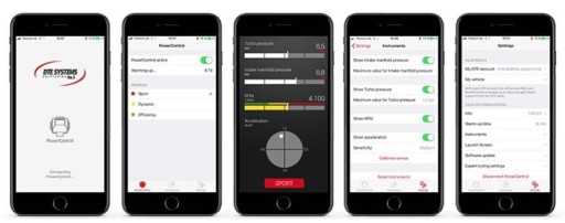 Szczególną atrakcją aplikacji PowerControl są wskaźniki wydajności, które pokazują wszystkie istotne dane dotyczące wydajności silnika na wyświetlaczu smartfona.