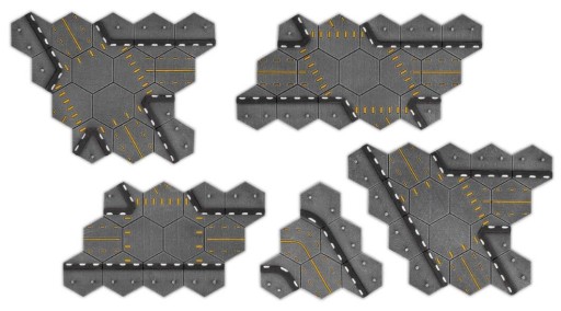 Elementy dróg z tej serii można łączyć ze sobą na polu gry w różne konfiguracje. Do kompletu zalecany jest także zakup zestawu HexTech HEXT08 Trinity City Highway Intersections, czyli rozwidleń tych dróg.