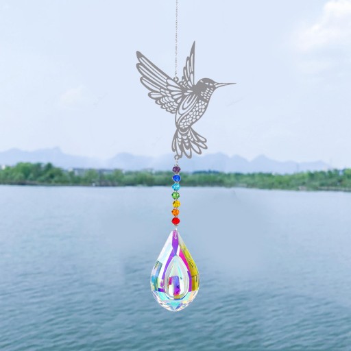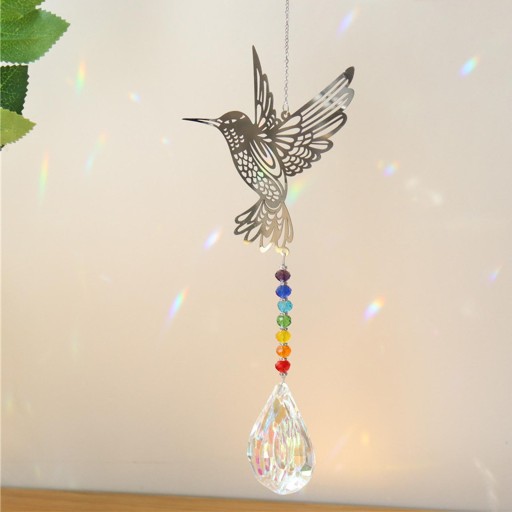 Хрустальные стеклянные подвески Люстра из нержавеющей стали Подвесное украшение Колибри 42см