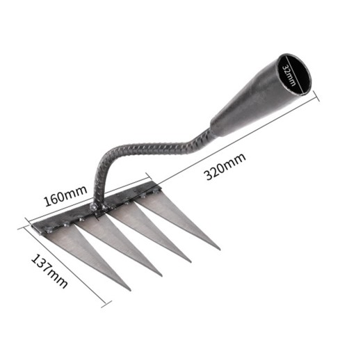 [Spawane ręcznie]: narzędzie ogrodowe wykonane jest z wytrzymałego materiału ze stali węglowej, spawania ręcznego, stalowych zębów, ostrości, odporności na rdzę i trwałości.