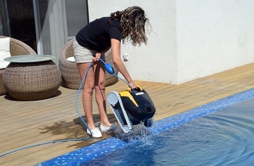 Odkurzacz basenowy Maytronics Dolphin E20 waży zaledwie 6,5 kg. Jest zaprojektowany w taki sposób aby woda odpływała bardzo szybko po wyjęciu z basenu a ergonomiczna poręcz ułatwia jego wyjęcie.