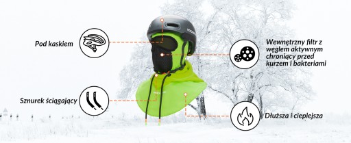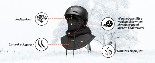 Kominiarka jest podszyta polarem dla ochrony przed wiatrem i ma dłuższe obszycie dla lepszej ochrony przed wiatrem i zimnem.