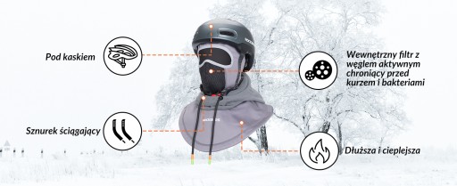 Kominiarka jest podszyta polarem dla ochrony przed wiatrem i ma dłuższe obszycie dla lepszej ochrony przed wiatrem i zimnem.