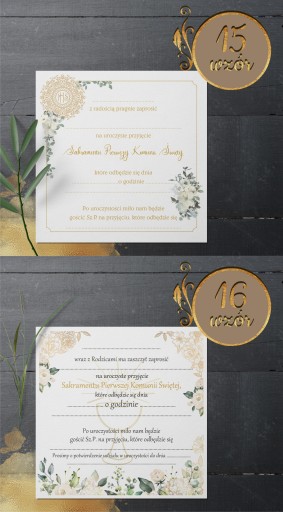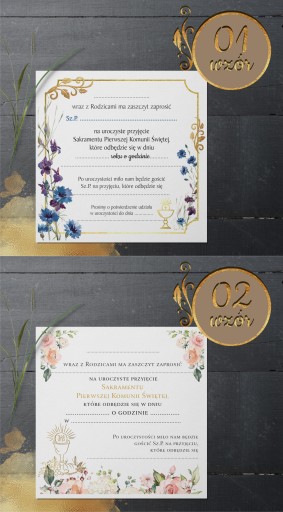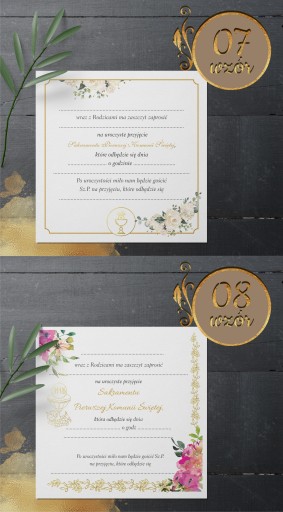 ZAPROSZENIA na komunię 3D perłowe -18 wzorów